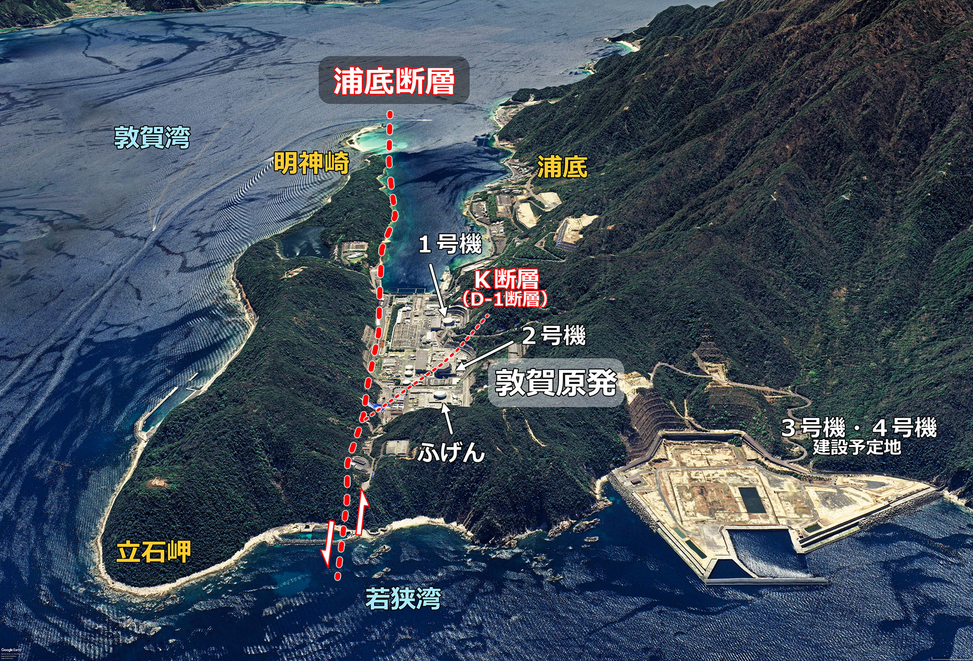 本題に入ります.敦賀原発は既に述べたように,日本で唯一の “活断層隣接原発” です(下図).