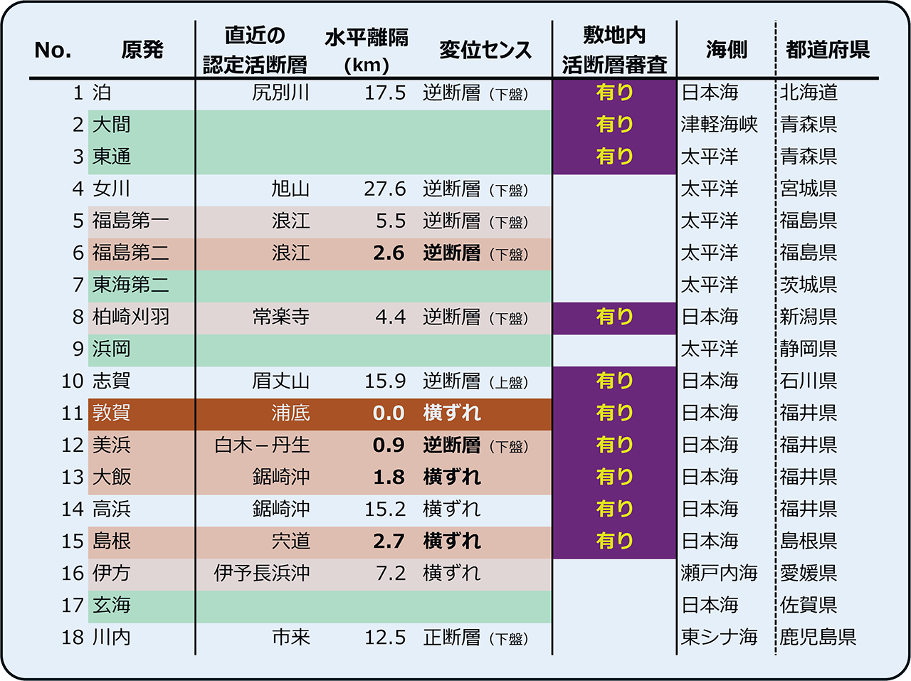 これら敦賀半島周辺に分布する活断層(活動セグメント)は産総研活断層データベースによれば横ずれ断層と逆断層がほぼ半々で,横ずれ断層では左横ずれ,逆断層では西傾斜西側上がりが卓越しています.それらがどういった断層系に属し,その成因をどう説明できるのかは不明です.いずれにせよ,敦賀原発が活断層卓越帯の中に位置し,その一つ(浦底断層)に隣接しているていることだけは確かです.