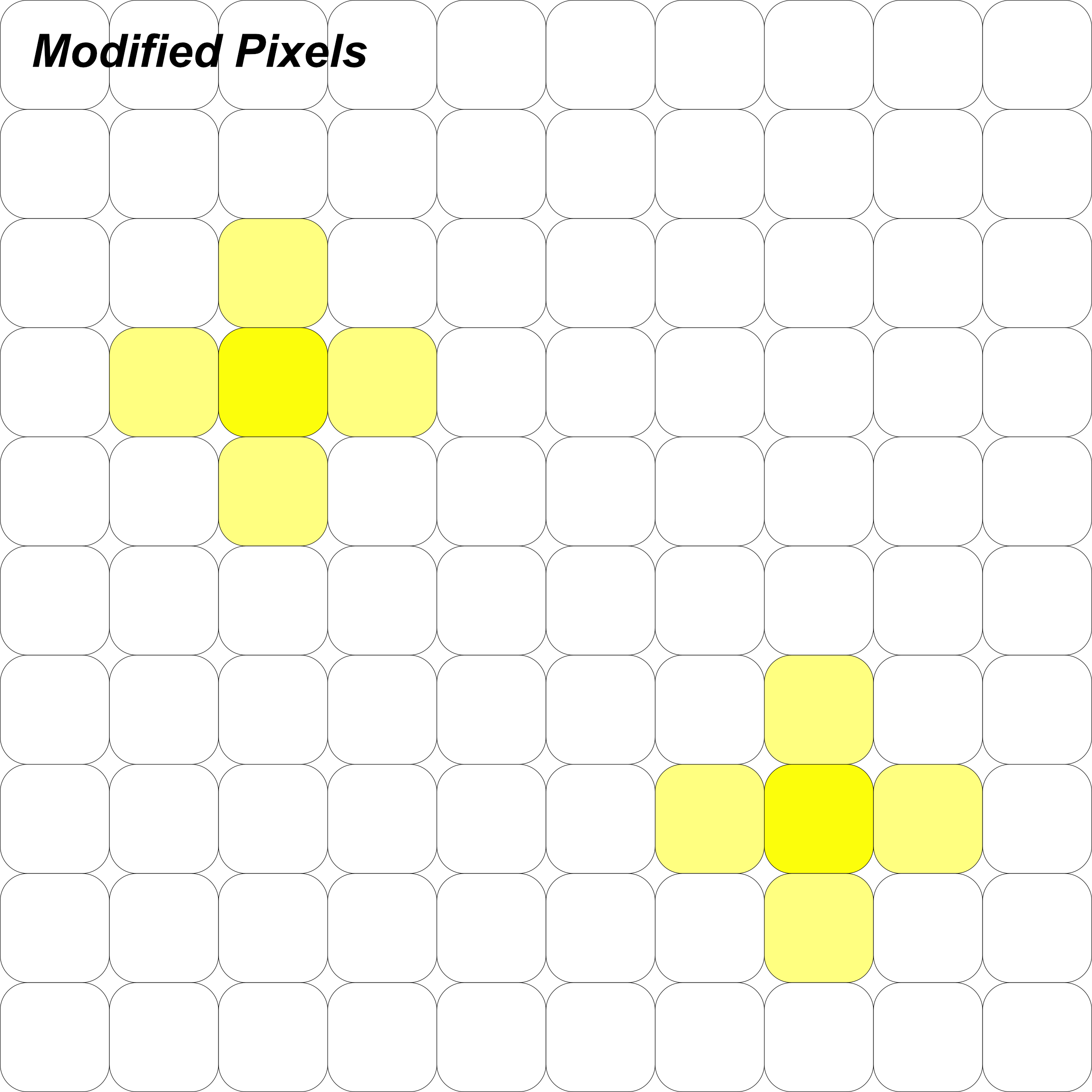 例えば,RGB = 255, 255, 255(白)のピクセルが RGB = 255, 255, 0(黄)に変化したとき,その変化を RGB = 0, 0, 255(青)の差分ピクセルとして見ることができます(左図).