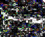 さらに,この “誇張差分” 画像を拡大表示で見ると,右のようなパターンが見えてきます.四角形のブロックパターンは 8 x 8 ピクセルです.パターン化とその乱雑さにちょっと驚くのですが,勘違いしないでほしいのは,この人工的なパターンは JPEG 画像そのものの中にあるのではなく,『圧縮前後の差分値を視覚化した画像の中にある』差分パターンです.つまり圧縮された JPEG 画像がこういうパターン化を実際に被っているわけではないことに注意してください.