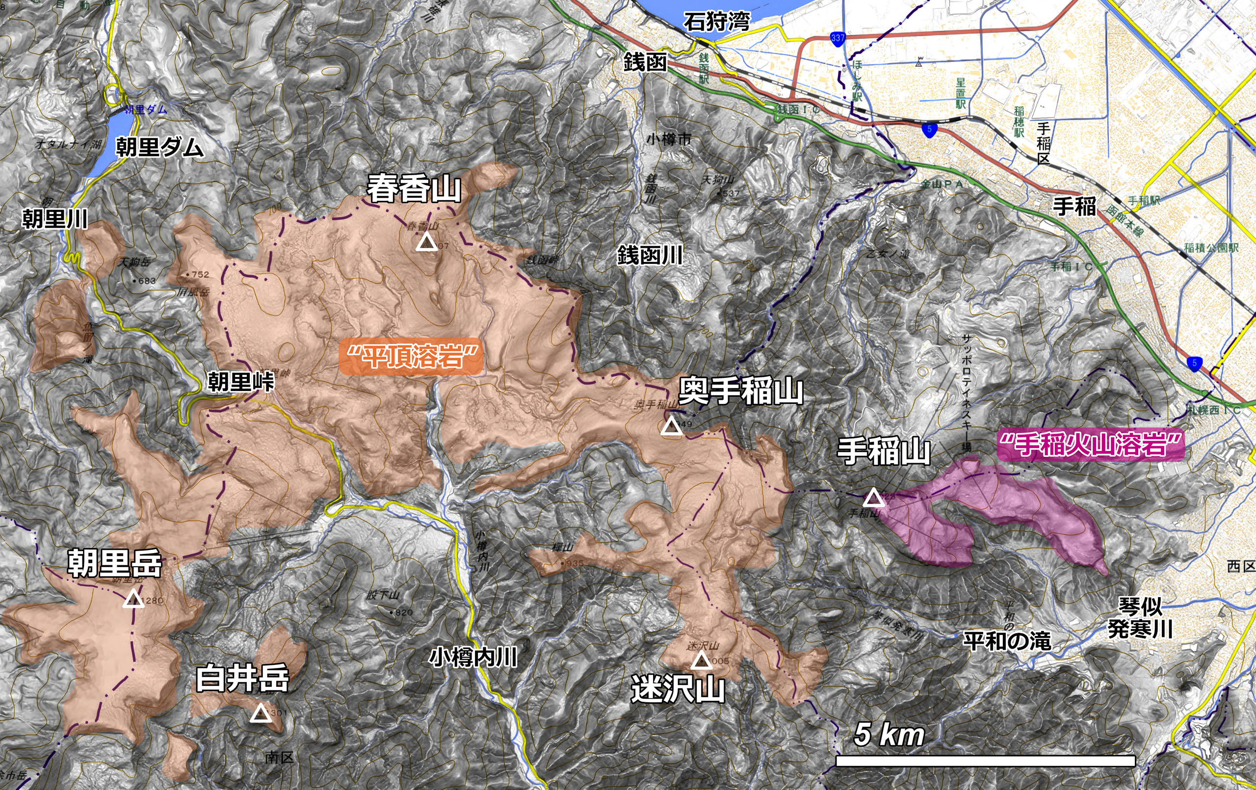 『手稲山』は札幌の多分どこからでも見えるシンボルのような山です.その頂上は緩く左(南)に傾いたテーブル状の特徴的な形をしています.これは “平頂溶岩” が作る一種の古火山地形であることは既に述べた通りです.