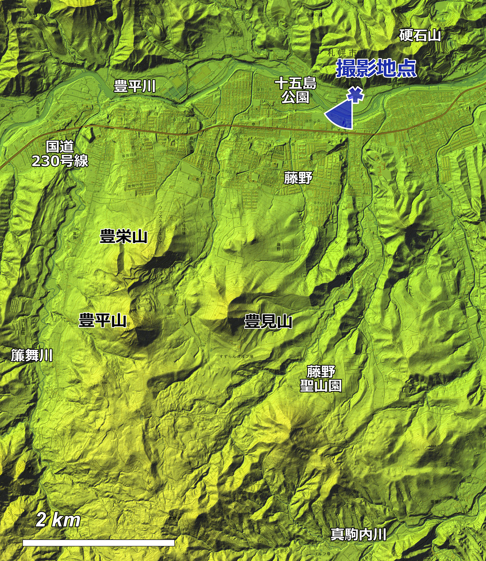 ※ パノラマ合成のもとになった写真の焦点距離は『35 mm 相当・換算値』です.カシミール3Dの景観シミュレーションの設定値における “焦点距離” も同様です.