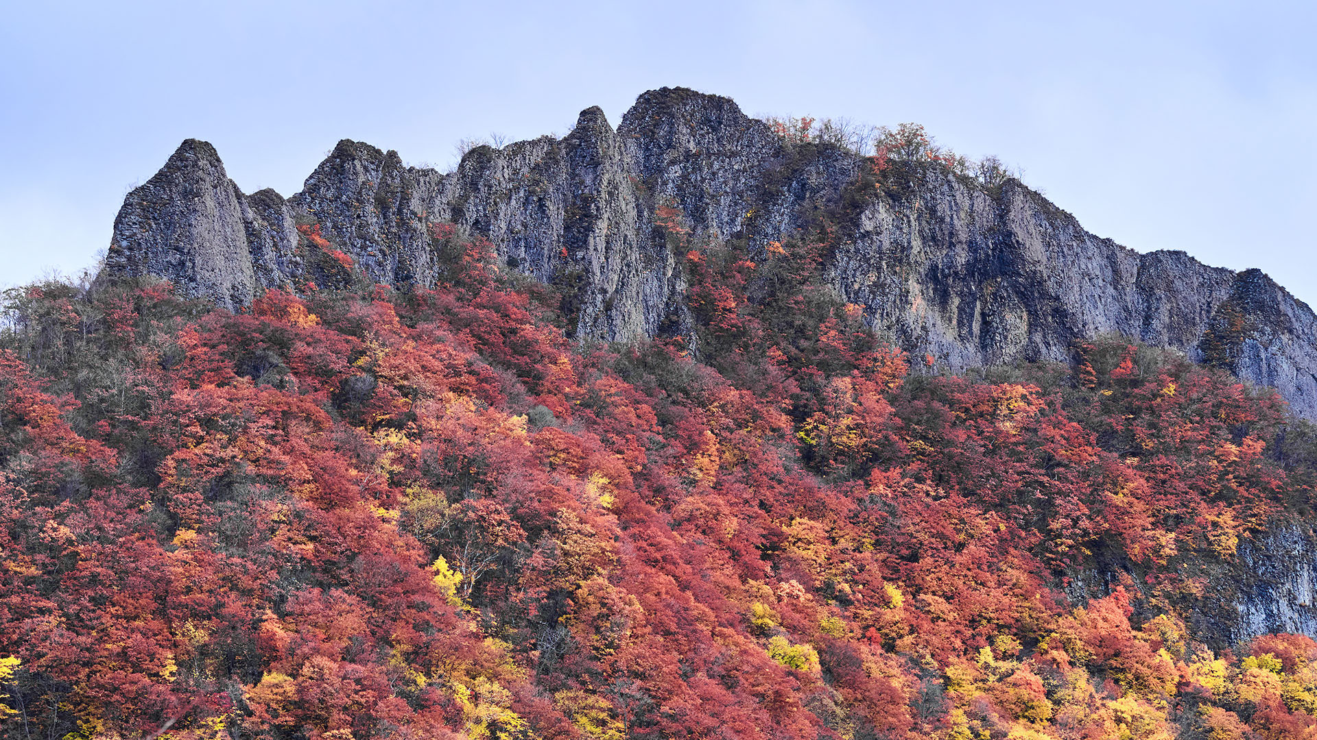 八剣山の岩峰の下は深い広葉樹林になっていますので,季節に応じたカラフルな風景を楽しむことができます.