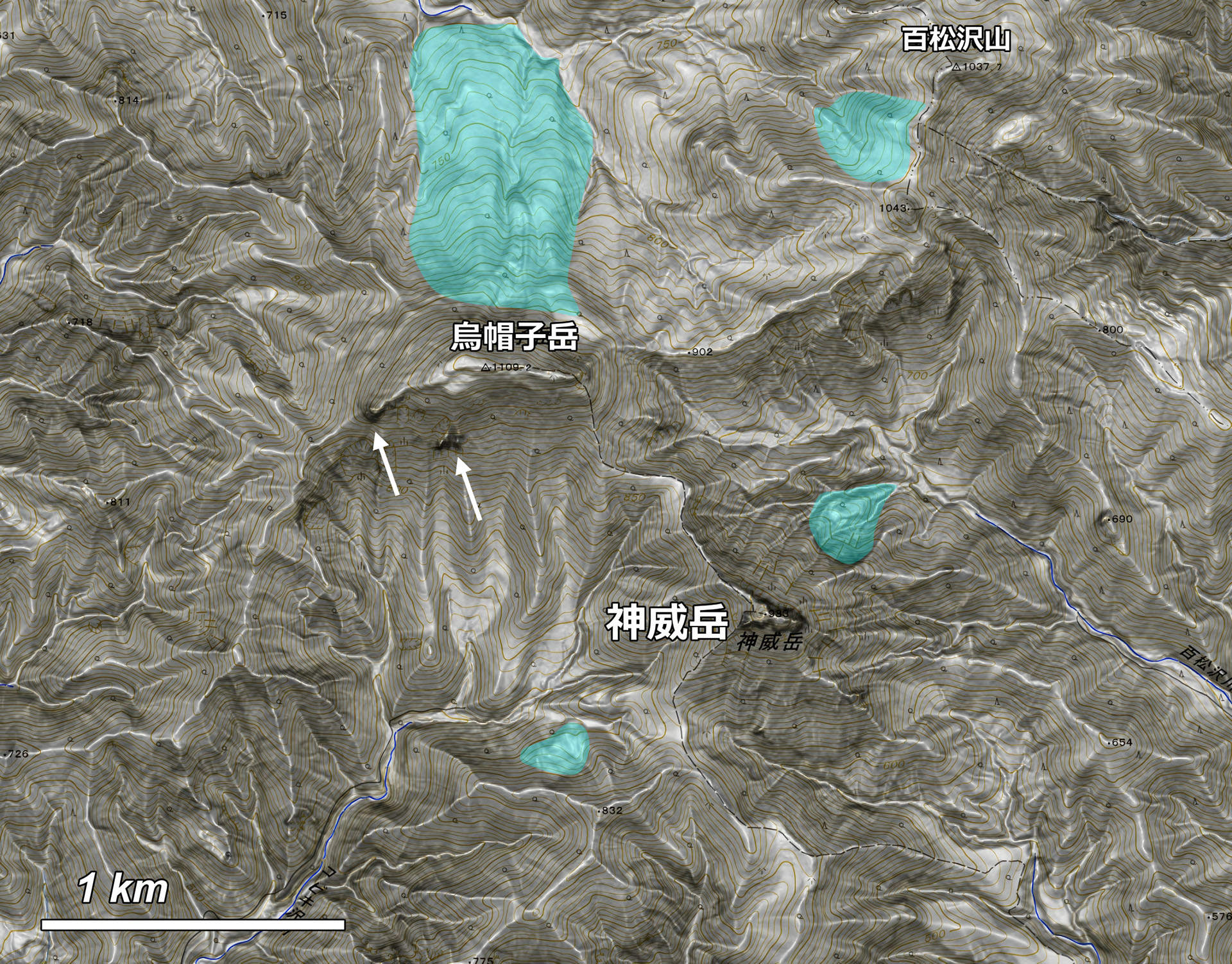 ※『札幌西方山地』は,おそらく正式な名称ではありません.Google/Bing で検索してみると,ヒットしてくるのはほとんどが私自身のページ(!)ですが,しかし私の造語でもありません.例えば岡村ほか(2010)にもはっきりと使われています.この論文では『...を札幌西方山地と呼ぶ』と書かれているのですが,私がこの言葉を知って使うようになったのはもっと前の話なので,どこかにオリジナルがあるのかもしれませんが,不明です.
