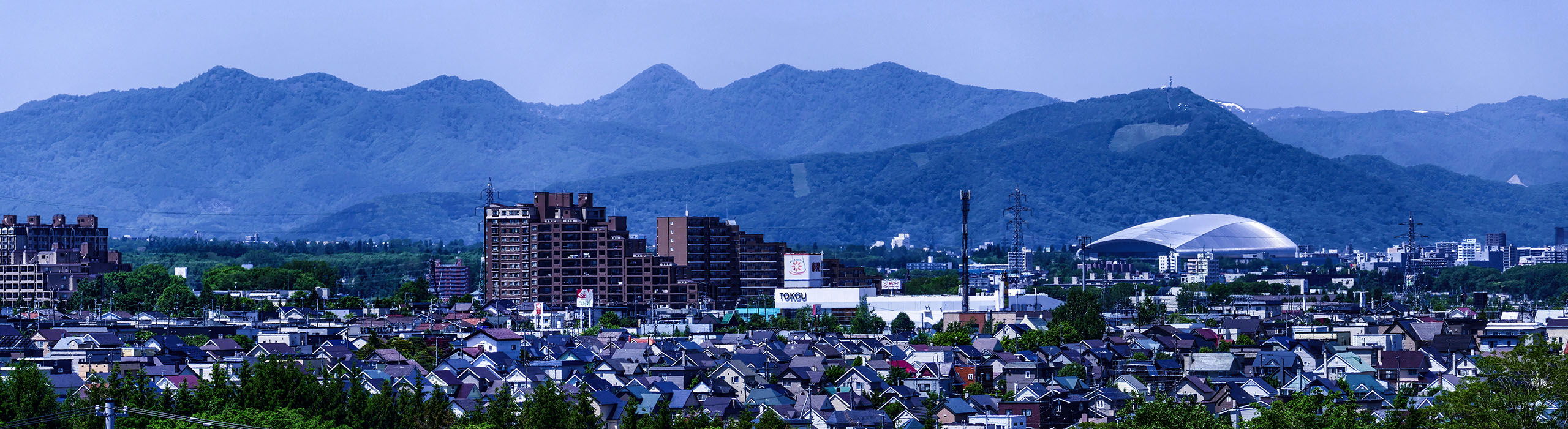 手稲山とその裾野の山々.上のパノラマの右を切り出し Adobe Photoshop により “空置換” を施したもの.