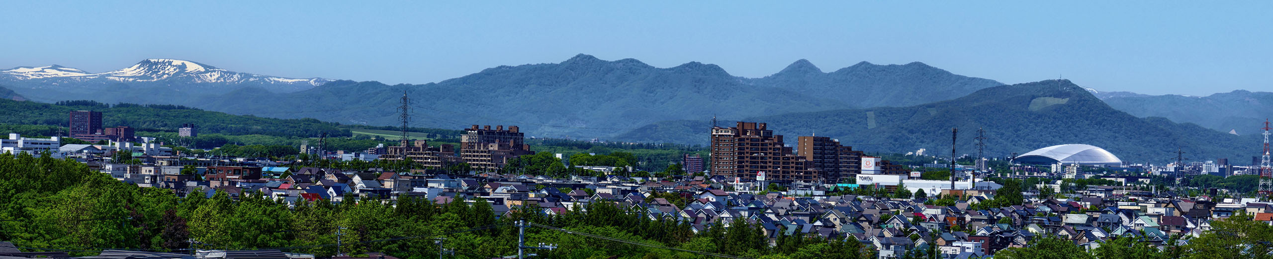 この場所は,札幌の西に広がる山地を一望できる私のお気に入りの撮影ポイントです.藻岩山の前にはプレミスト・ドーム(旧札幌ドーム)が輝いています.こうやって見ると,藻岩山というのは向かって左(南)側に裾野を引いた著しく非対称な山型を持っていて,その頂部はやや平坦な形をしているのが分かると思います.