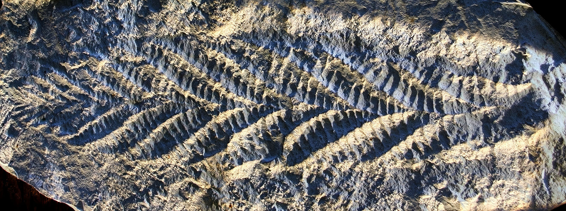 新原生代エディアカラ紀(635 - 539 Ma)は,エディアカラ生物群 と呼ばれる奇妙な化石生物群(右写真)によって特徴付けられる原生代最後の時代です.それは,複雑さと巨大なサイズを特徴としています.この生物群が三葉虫などの古生代型生物群によって取って代わられ,有名な『カンブリア爆発(Cambrian Explosion)』と呼ばれる生物進化における一大イベントが起こりました.