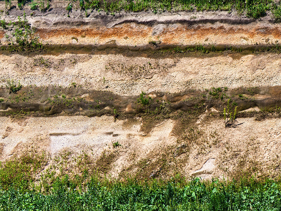 支笏火山噴出物露頭.露頭下半部の塊状部が支笏火砕流堆積物.その上が何枚かの腐植土を挟む降下火砕堆積物.専門外で正確には分からないが,支笏~恵庭降下軽石堆積物で,最上部が樽前火山灰と思われる.土採り場のファンタスティックな露頭であるが,その後の改変で失われた.支笏火砕流堆積物中には,しばしば炭化樹幹が含まれている(参照リンク:苫小牧市美沢東方で撮影).苫小牧市ペンケナイ川北方.